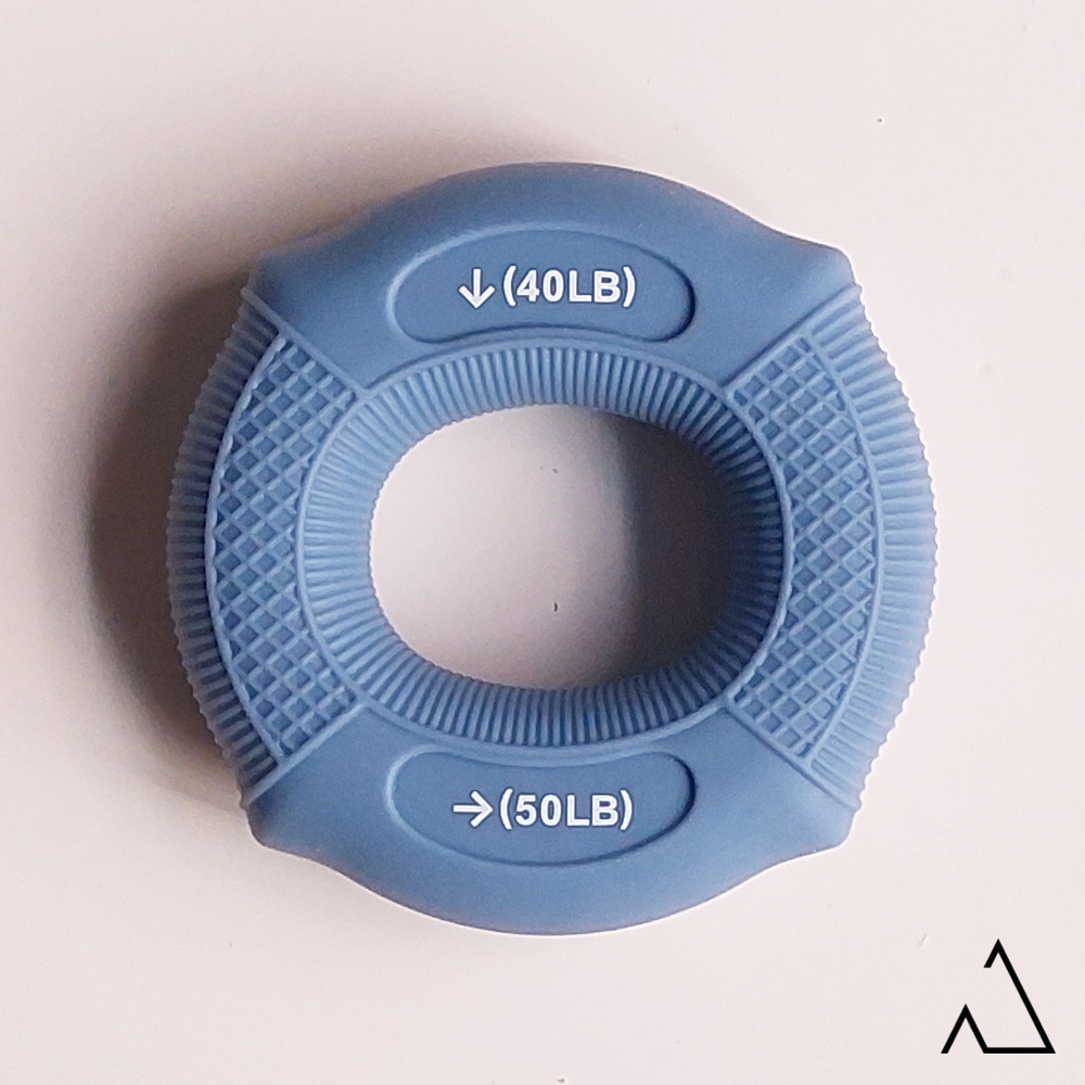 قطر استاندارد: قطر این حلقه ۷.۷ سانتیمتر (۷۷ میلیمتر) است. این اندازه، کمی کوچکتر از حلقه‌های لاستیکی معمول بازار (که حدود ۹ سانتیمتر قطر دارند) است، اما همانطور که در تصویر مشاهده می‌کنید، به خوبی در کف دست جا می‌گیرد و در اکثر مواقع مشکلی در انجام تمرینات مچ و ساعد ایجاد نمی‌کند.